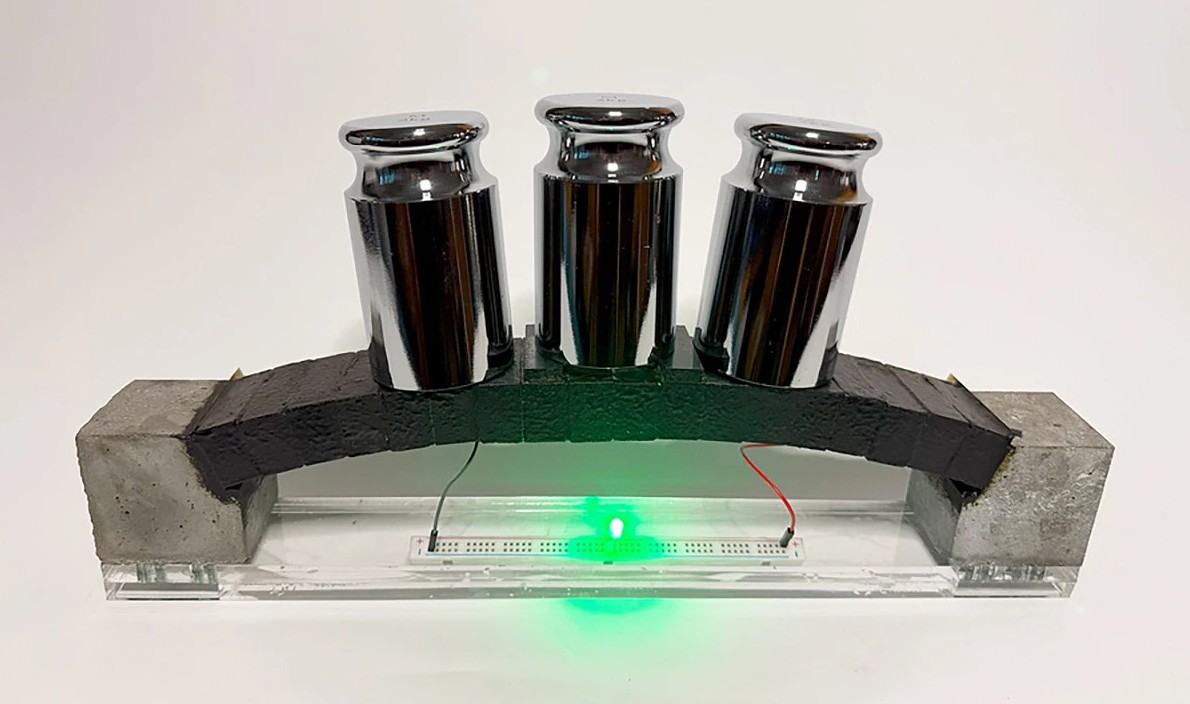 Самое интересное, что такой бетон остается строительным материалом, поэтому из него можно возвести здание, которое целиком будет огромным аккумулятором. Причем под физической нагрузкой (например, от сильных порывов ветра) его электрические параметры будут меняться. Это можно использовать как пассивную систему контроля состояния батареи.
