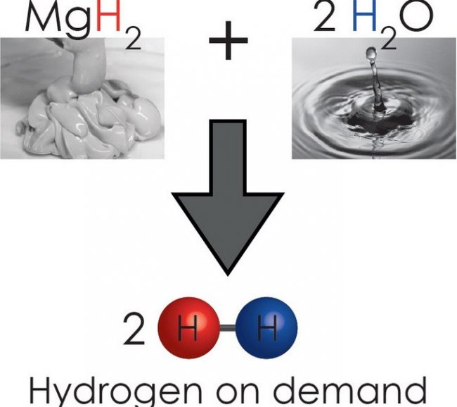 Это паста, способная хранить водород при атмосферном давлении и температуре окружающей среды. Для выделения газа к веществу необходимо просто добавить воду.