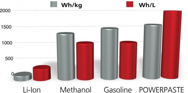 Это значит, используя POWERPASTE, можно сделать электрическое транспортное средство с большей дальностью хода, чем у аналогичных моделей, получающих питание от аккумулятора или оснащенных бензиновым двигателем. Паста не требует хранения под давлением и выдерживает температуру до 250 °C, что гарантирует высокую безопасность.