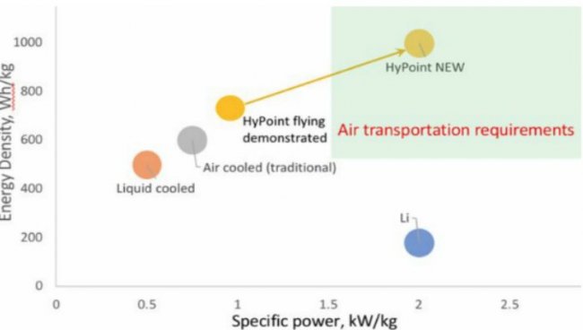 Чтобы решить проблемы привода на водородном топливе, такие как низкая мощность, малый срок службы и ограниченный температурный диапазон применения, HyPoint создала топливный элемент, охлаждаемый воздухом с применением турбонаддува.