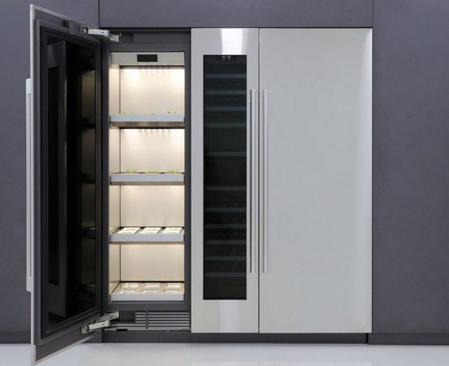 Температуру и освещение в таком шкафу можно регулировать в зависимости от времени суток, а система подачи и фильтрации воды обеспечивает все условия для питания растения, предотвращая рост сорняков и проникновение посторонних запахов, так как шкаф по сути нужно открыть только дважды – чтобы поставить семена и затем собрать урожай. Контролировать все функции и следить за ростом растений можно через специальное мобильное приложение, которое также будет давать необходимые советы.