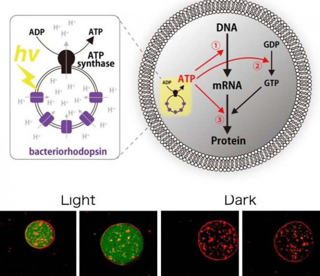 Как и надеялись ученые, синтезированный протеолипосомами АТФ использовался в качестве топлива для производства матричной РНК и белка. Помимо прочих белков, клетка синтезировала дополнительное количество АТФ-синтазы и бактериородопсина, что повысило эффективность процесса.