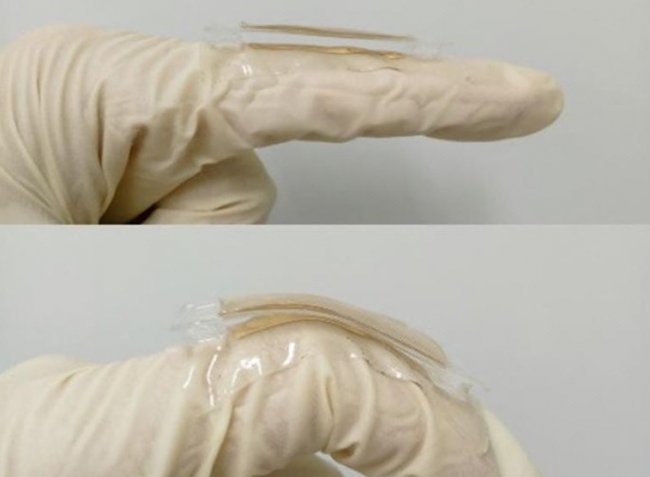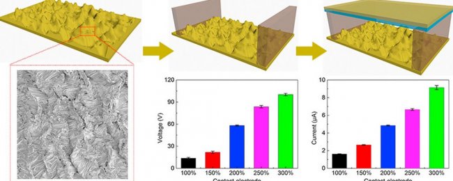Новый девайс представляет собой полоску размером 1,5х1 см, которая сделана из двух тонких слоев золота, разделенных слоем полидиметилсилоксана (ПДМС). ПДМС – это тот же силиконполимер, который содержится в контактных линзах или в «умном» пластилине. Растяжение слоев золота приводит к их трению со слоем ПДМС. При этом электроны перемещаются между двумя слоями металла. Их поток тем больше, чем чаще движения, приводящие к изменению геометрии слоев.