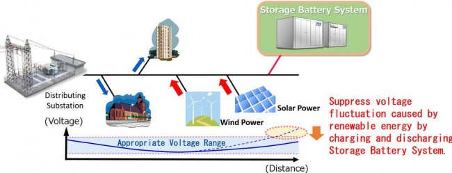 Cупераккумулятор под названием Storage Battery System будет использован для накопления избыточного электричества из общей сети в часы с низкой нагрузкой, и возвращения его в сеть во время высокого спроса на электроэнергию. Подобная батарея идеально подойдет для хранения возобновляемой энергии, вырабатываемой ветрогенераторами или солнечными электростанциями, график производительности которых не является постоянным.