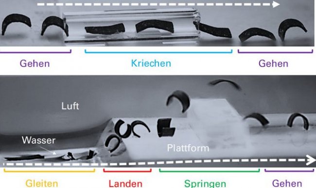 Новый микроробот размером всего 4 мм двигается подобно гусенице пяденицы или личинкам жуков, складывая и распрямляя свое «тело». Движение осуществляется благодаря магнитным частицам, встроенным в пластину из эластичного кремния. Ученые смогли управлять движением искусственной гусеницы, изменяя внешнее магнитное поле.