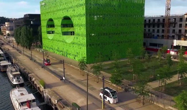 В Лионе – столице французского региона Рона-Альпы – запустили сервис NAVLY по перевозке пассажиров автономными электробусами. Планируется, что беспилотный маршрут будет работать в тестовом режиме в течение года. Замкнутый круговой маршрут протяжённостью 1350 м проходит в районе Конфлюанс, где на