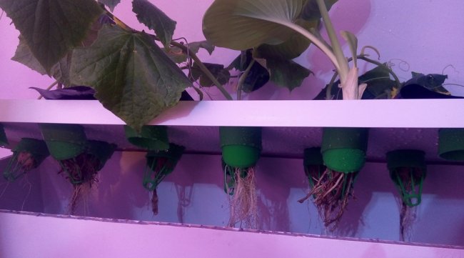 Пробовали выращивать овощи и садовые цветы, для чего разрабатывали собственные конструкции: на системе площадью 0,5 кв. м удалось вырастить 320 кустов клубники, которая начала плодоносить уже на 24 день после высадки.