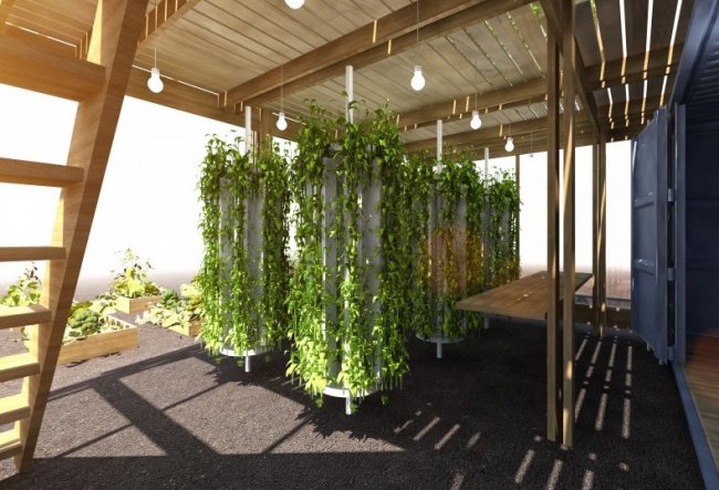 Ферму с производственной площадью 50 квадратных метров можно легко разместить даже на территориях с плотной городской застройкой. Сотрудники дизайн-лаборатории Mikkel Kjaer и Ronnie Markussen утверждают, что ферма может быть установлена в течение 10 дней. Концепция должна дать новую жизнь переработанным транспортным контейнерам, которые используются для перевозки всех компонентов фермы и становятся центральной частью ее структуры.